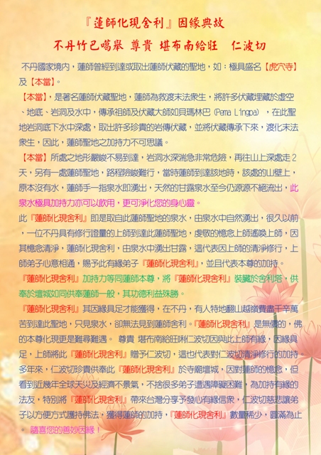 主法上師:尊貴的 仁認 大仁波切及其心子 堪布南給旺唎仁