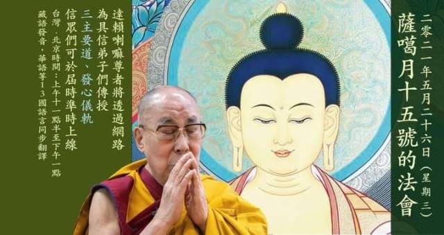 達賴喇嘛尊者-薩噶達瓦三主要道.發心儀軌 主法上師:達賴喇嘛尊者 格魯 法會 2021/05/26 021年5月26日(星期三) 薩噶達瓦 藏曆 四月 初十五 達賴喇嘛尊者將會透過網路為具信弟子們傳授三主要道、發心儀軌,信眾們可於屆時準時上線。 印度時間:上午09:00~10:30am 台灣/北京:上午11:30~13:00pm 藏語發音,華語等13國語言同步翻譯 2021年薩噶月十五號的法會法本:https://bit.ly/3eVYcoe 友善列印 上一篇:法鼓山母親節暨浴佛節 靈環保家庭日 下一篇:達賴喇嘛尊者-宗喀巴大師《證道歌》 精選法訊 「薄伽梵獨勇怖畏金剛成就法」專修法會 2026/01/17~2026/01/18 格魯 法會 馬頭明王護法酬懺曁洗塵除障法會 2026/01/17 格魯 法會 『大白傘蓋佛母』迴遮除障驅邪同修法會 2026/01/17 寧瑪 法會 歲末回遮除障法會法訊 2026/01/17~2026/01/24 寧瑪 法會 歲末般若心經除障大法會 2026/01/18 寧瑪 法會 普巴除障蓮師長壽佛羅漢財神開運+喬遷功德 2026/01/18~2026/02/17 寧瑪 法會 白度母三壽尊無戲依一物息災袪病延壽火供 2026/01/18 寧瑪 火供 第八屆藥師佛文化節 2026/01/18 顯教 法會 喇嘛網| Facebook 全球慈悲智慧數位佛學院 全球藏傳佛教最新弘法訊息﹝ Google全球第一資訊同步 ﹞