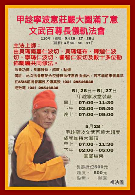 備註:此次法應配合疫情無法任意自由進出,若不能前來者盡早在5/25前將眷屬姓名傳真致(02)24516548 或 致電(02)24516538