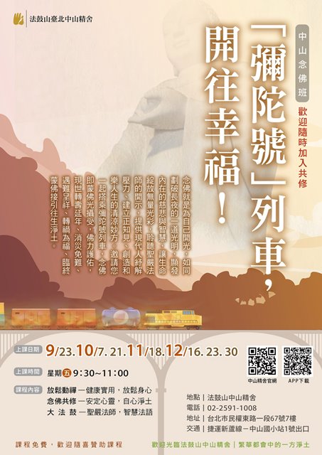 邀請您 一起搭乘彌陀號列車,念佛即蒙佛光攝受,佛力護佑,現世轉壽延年、消災免難、遇難呈祥、轉禍為福、臨終蒙佛接引往生淨土。