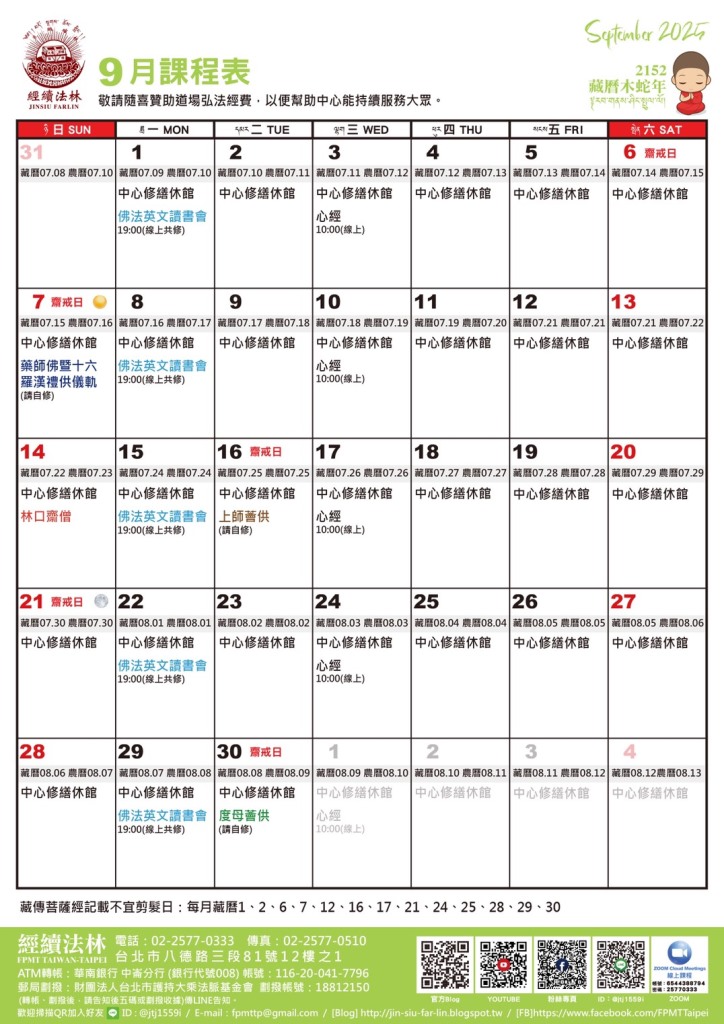 經續法林2025年9月課程表