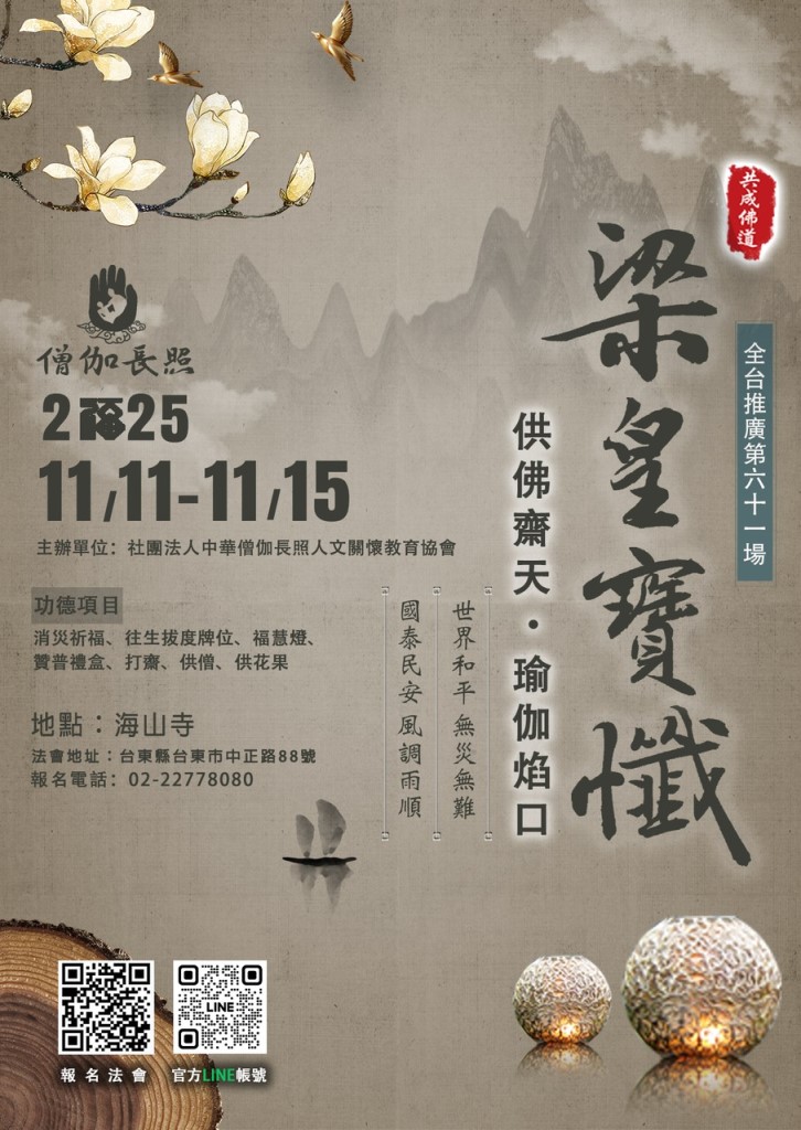 全臺推廣第六十場梁皇寶懺法會臺東場(11/11-11/15)