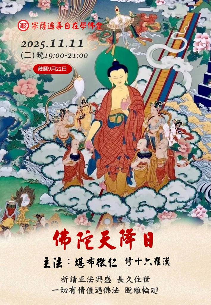 於佛教的經典記載「天降日」是非常殊勝重要的日子,在這一天廣行種種善業,能累積大福德,因此在印度、西藏、尼泊爾所有佛教聖地、寺廟,在此殊勝「天降日」皆舉行盛大法會及各種利生活動,此日所行之善,皆增長為十億倍功德。