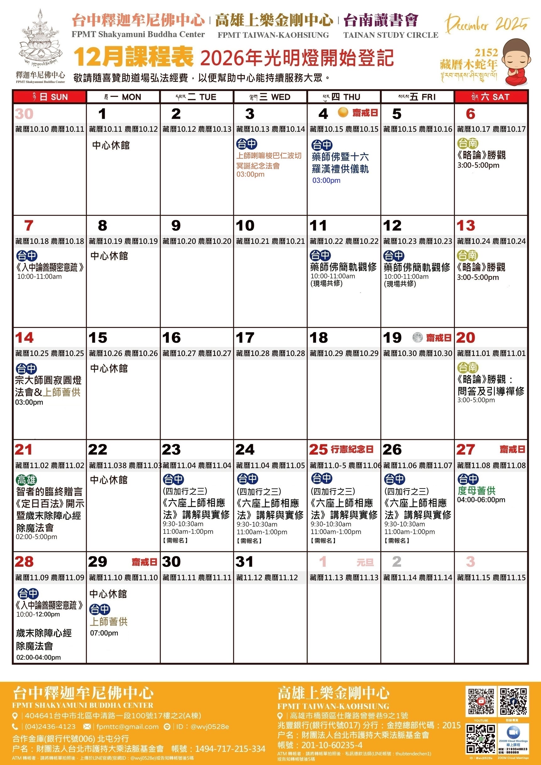 台中釋迦牟尼佛中心 高雄上樂金剛中心 台南讀書會