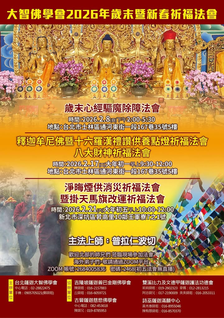 早上9:30~12:00釋迦牟尼佛與十六羅漢禮讚供養點燈祈福法會暨 八大財神祈福法會