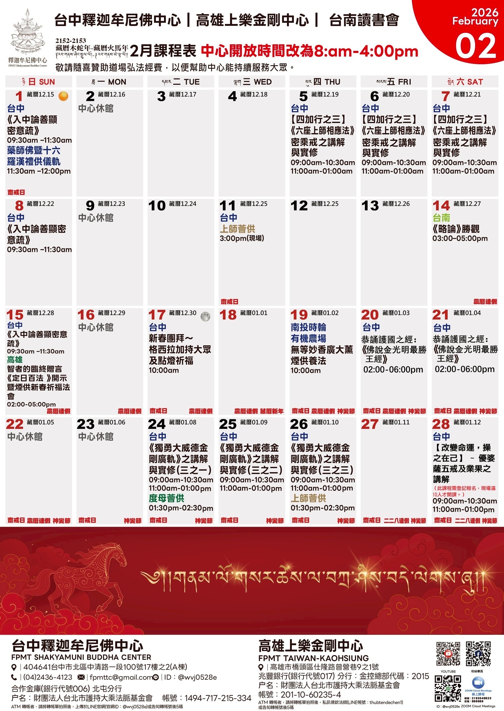 台中釋迦牟尼佛中心 高雄上樂金剛中心 台南讀書會