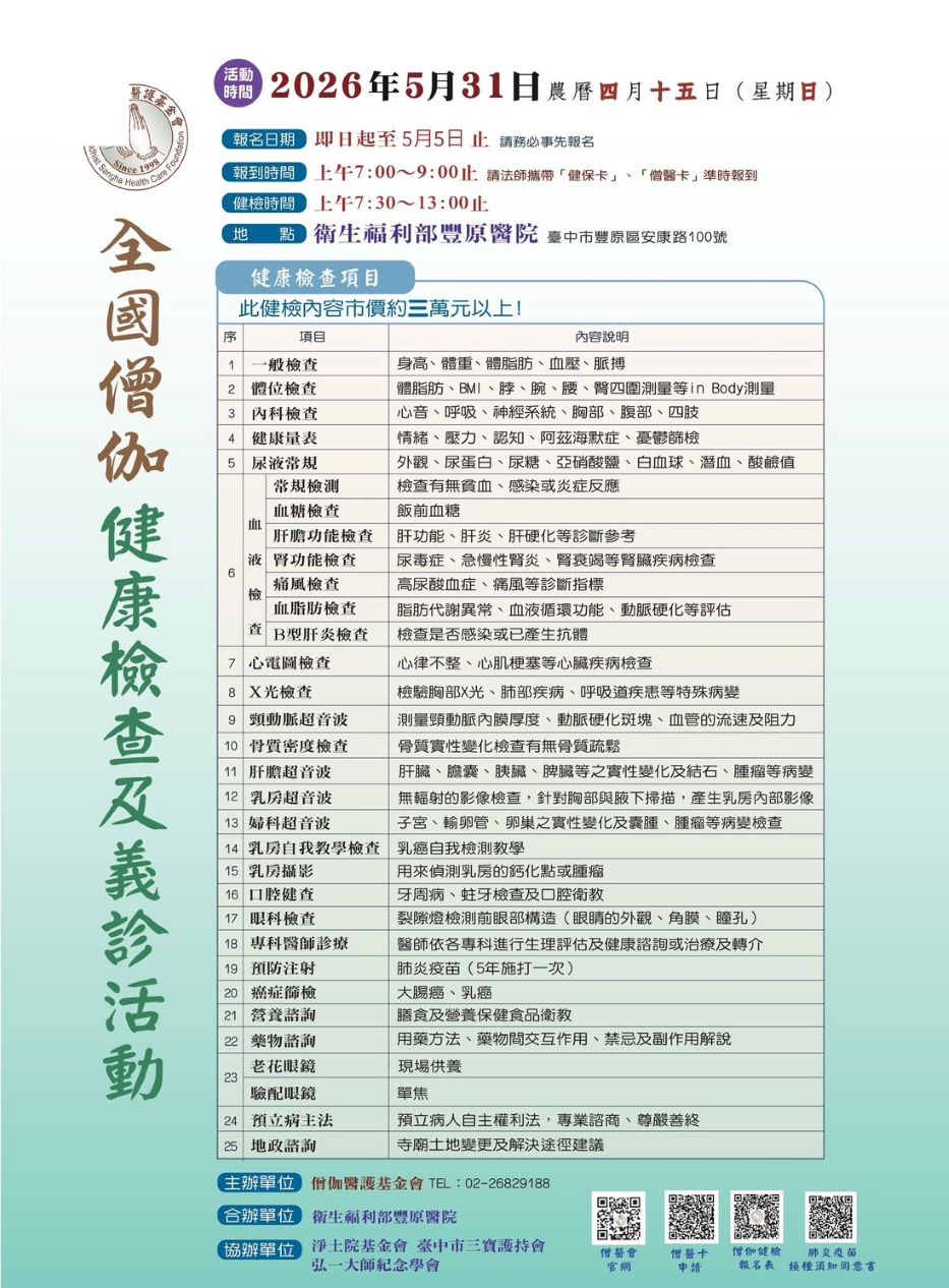 【全國僧伽健康檢查及義診活動】