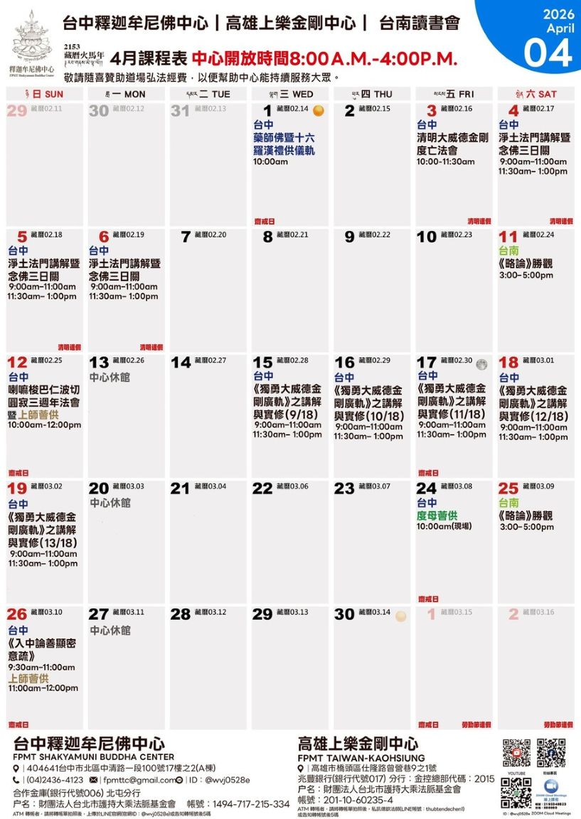 台中釋迦牟尼佛中心 高雄上樂金剛中心 台南讀書會