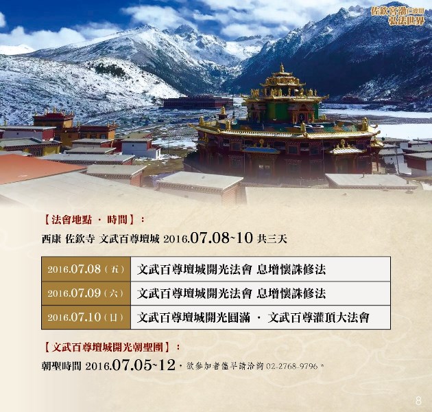 ● 請參見「2016文武百尊壇城開光大法會 參贊表」。