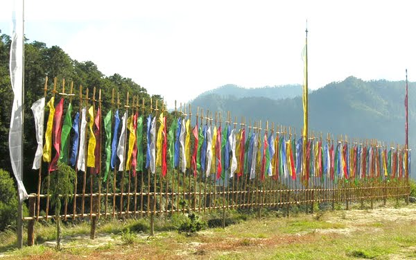 (1.聚蓮塔 2.菩提塔 3.法輪塔 4.神變塔 5.天降塔 6.和合塔 7.勝利塔 8.涅槃塔),可供繞塔禪修、行禪之用。 ◎閉關中心四周安置除障旗,預定建一座普巴金剛除障寶塔及尊勝佛母舍利寶塔,可鎮宅鎮山,供行者禪修用。(以上圖片為閉關中心預定建寺之參考)閉關中心四周安置除障旗