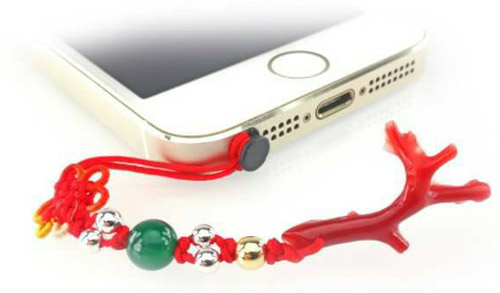 圖為大型作明佛母火供及護法總集大煙供法會結緣品:“懷愛珍寶吉祥紅珊瑚手機掛飾”!