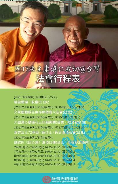 【2017年法主東滇仁波切@台灣 / 行程表】