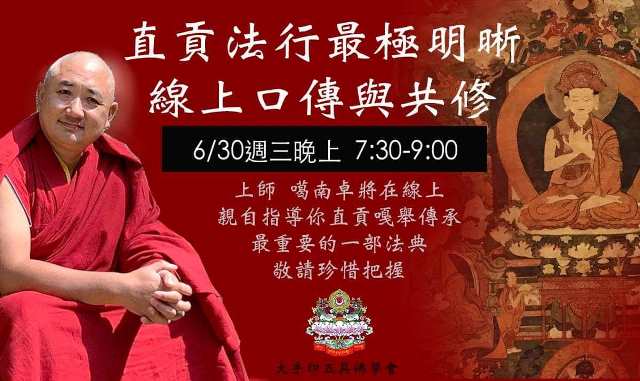 直貢法行最極明晰 主法上師:尊貴 噶南卓仁波切 噶舉 法會 2021/06/30 我要參加 我要祈福 尊貴噶南卓仁波切 直貢法行最極明晰 每週三線上共修 日期:6/30週三 時間:晚上7:30~9:00 條件:線上參加共修者必須有課誦本 上師噶南卓為弟子此世及未來世生生世世皆能獲得累世佛果,特編纂此法行之大集,並親自線上教授口傳以利益華人眾弟子成就佛果。 購買法本含運4000元 https://forms.gle/LiTugyYnWBPmWzG38 上師會依此法行總集『線上共修』將每部經文如法”口傳,教授,講解,帶誦,完整教學,讓請法弟子如實修行法行經文,至證佛果 友善列印 上一篇:佛陀初轉法輪日暨直貢法王誕辰慶祝會 下一篇:第13世達察功德林仁波切-佛法研討 大手印五具佛學會 社團法人中華直貢噶舉大手印五具佛學會,由尊貴的 噶南卓仁波切創立,位於台北市松山區南京東路五段356號12樓 法會共修活動,福田共植,宗教服務,大手印學堂 聯絡電話: :0227611177 地址 : 台北市南京東路五段356號12樓 精選法訊 熹嘉仁波切-觀音隨許灌頂&無量光佛隨許 2025/12/06~2025/12/07 格魯 灌頂 寧瑪經續光明佛學會12月法訊 2025/12/06~2025/12/29 寧瑪 法會 煙供法會&藥師佛火供 2025/12/06~2025/12/07 格魯 法會 佛光山萬緣水陸法會 2025/12/06~2025/12/13 顯教 法會 德謙讓卓-堪千竹清嘉措仁波切圓寂紀念音樂會 2025/12/07 噶舉 法會 更新上密院台北市佛學會114/12行事曆 2025/12/07~2025/12/31 格魯 法會 12/07 超渡- 三根本聯合救拔渡亡法 2025/12/07 噶舉 法會 伏魔洲『施身法之紅施』同修法會 2025/12/09 寧瑪 法會 喇嘛網| Facebook 全球慈悲智慧數位佛學院 全球藏傳佛教最新弘法訊息﹝ Google全球第一資訊同步 ﹞