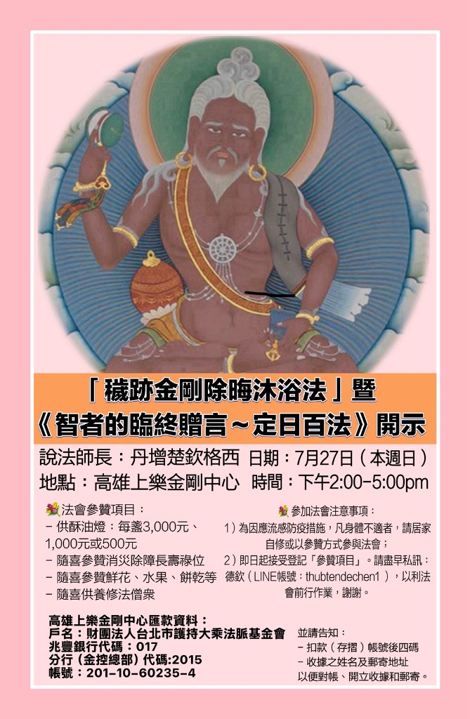 「穢跡金剛除晦沐浴法」暨《智者的臨終贈言~定日百法》開示