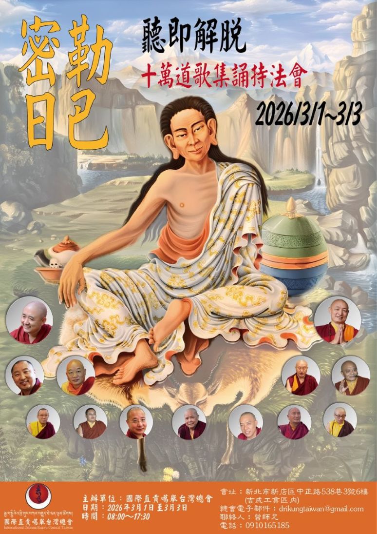 We are delighted to announce the coming auspicious event of reciting The Hundred Thousand Songs of Milarepa. The International Drikung Kagyu Council Taiwan(IDKCT) has organized and invited the sanghas in Taiwan. The recitation will be conducted mainly in Tibetan. If you wish to join us online, please save the dates and time. The live stream link of online practice will be further posted.