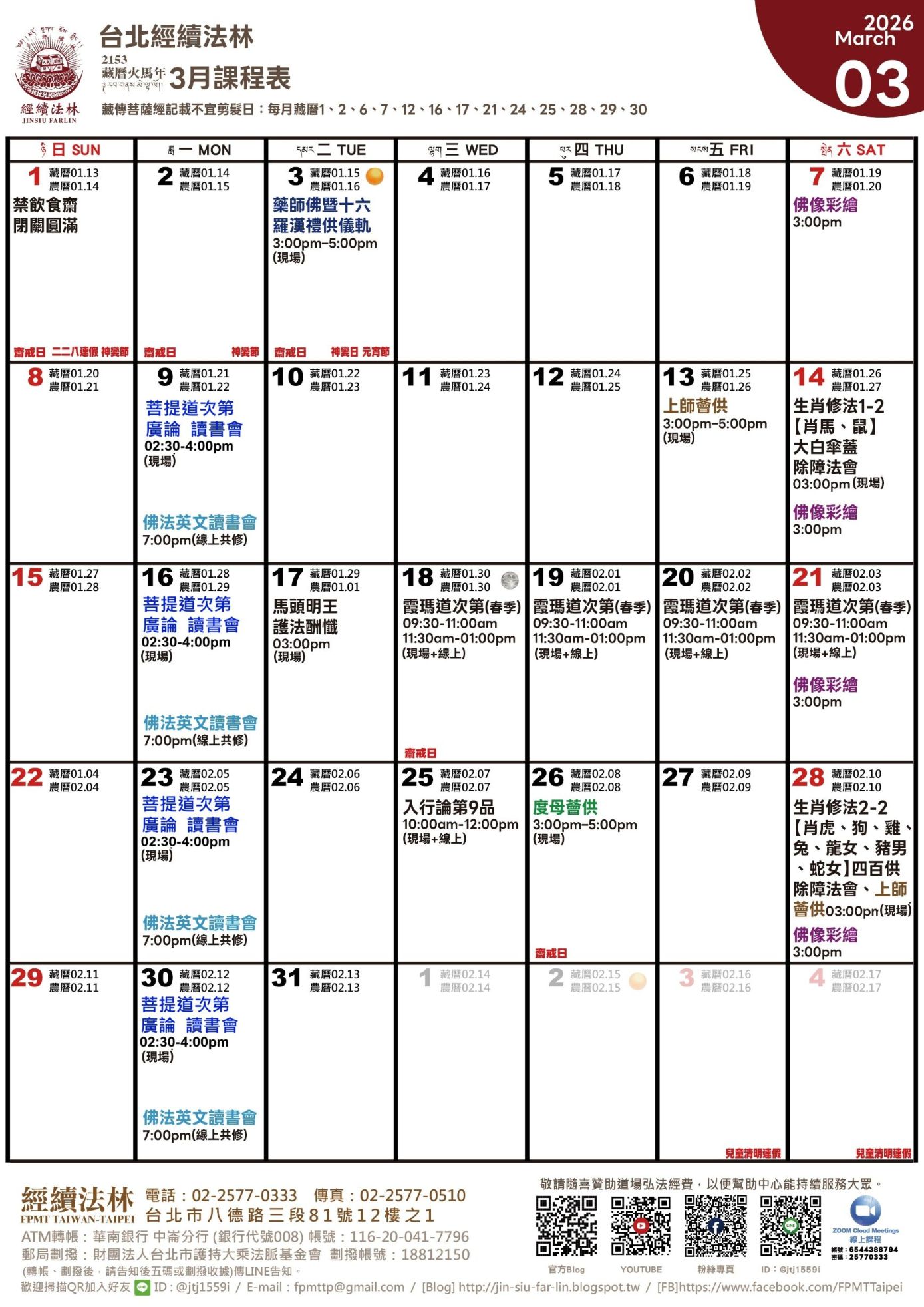 經續法林2026年3月課程表
