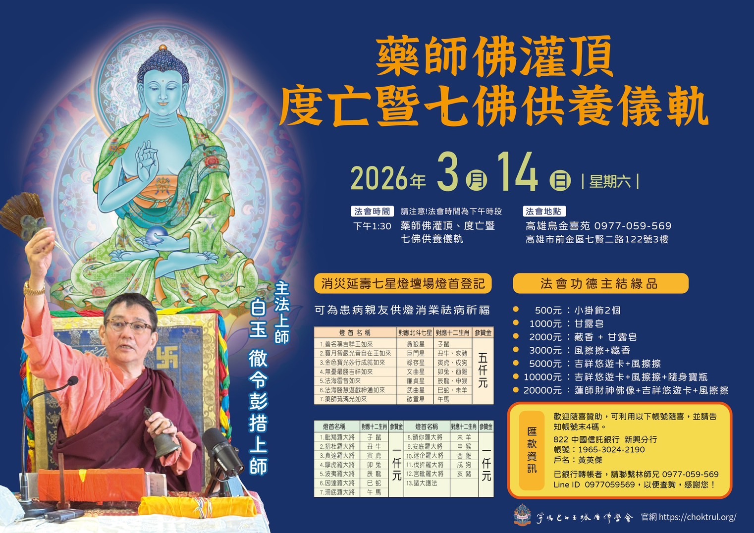 2026 高雄藥師佛灌頂、度亡暨七佛供養法會