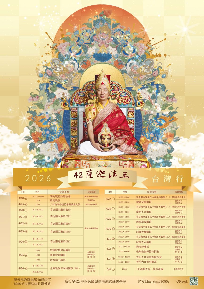 各位法友吉祥,籌備已久的尊貴第42任薩迦法王來台弘法行程已正式公開!