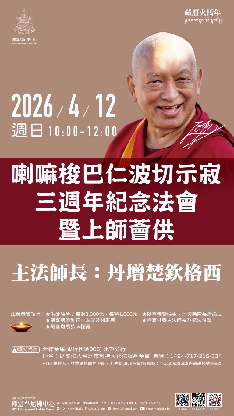 法會時間:2026 / 4 / 12 週日10:00-12:00