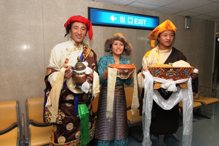 高雄市長陳菊、屏東縣副縣長鍾佳濱昨晚都到機場接機,高鐵董事長殷琪也在高鐵青埔站陪同達賴一起南下高雄。機場外也有部份歡迎和抗議的團體,達賴表示尊重,認為抗議是言論自由的表現,強調此行「不是來追尋分裂和獨立」,抗議的人不了解他、誤解他;他說,台灣為了經濟和防禦的理由,應和大陸保持一定的關係。