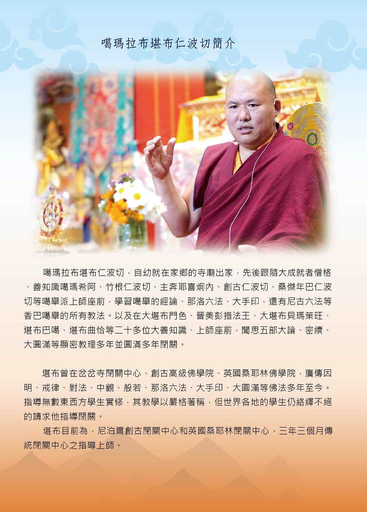 2015年,堪仁波切首度開創了不同於傳統三年三月閉關的六年閉關項目,這是專門針對海外弟子的全新閉關模式,。